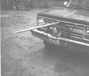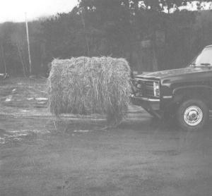 "It lets me haul bales weighing up to 750 lbs. at highway speeds," says Bablo. "I'm a small time farmer with 12 beef cows and I don't have a tractor. I use the spear to haul bales from my neighbor, who lives about a mile away, back to my pasture where I drop them and put a bale ring over them for feeding. It cost a lot less than buying a tractor and I always stay nice and warm inside the Blazer. The snow blade weighs more than 400 lbs. by itself so the bale isn't that much extra weight on the vehicle. I mounted an extra leaf spring on the vehicle when I in-stalled the snow blade which helps support the extra weight.