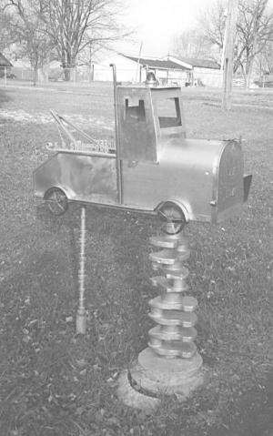 I was in the body shop and wrecker service business for 40 years and developed a love for stainless steel. So when my mailbox rusted out, I decided, "Why not make one out of stainless?" I decided to make it look like a wrecker. The body was made from sheets of stainless. The only parts that are not stainless are the exhaust pipes, which are 3/8-in. copper. The main post came out of a Cummins diesel truck. The back post is a cam shaft out of a car. It gets a lot of lookers and I know it will last last a lifetime if it doesn't get run over. (K. Roger Swineford, 1380 St. Rt. 603, Ashland, Ohio 44805)