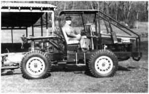 "I use it to drag logs from the woods to cut into firewood," says Bashore. "It has great traction and floats over even the roughest ground. The four drive wheels provide great traction, and the low profile lets me travel across slopes without fear of tipping. I can kick the rear wheels out of gear for road use.