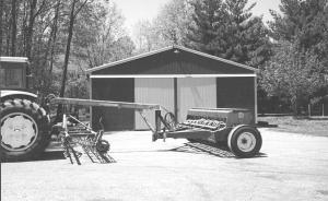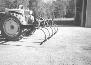 "First, I took the pto-driven gearbox and all working fingers off the Roterra and replaced them with Danish tine shanks and spike shovels. Next, I adapted the drill to fit the hitch by removing the outside brackets from the tongue and bolting the hitch frame to the inside drill frame, then rebolting the outside brackets to the hitch frame. The Lely bracket seems made for my Ford 8600. The drill/Roterra combo turns just as short as a drill hooked to a tractor because the pivot point is still on top of the drawbar and axle. I can turn so short that the hitch will be at the side of the tractor, so turning is no problem. The rig does a good job incorporating herbicides for drilling beans. I paid only $200 for the Roterra and hitch which I use on 225 acres of soybeans and 100 acres of fall sowed wheat every year. The hitch detaches easily, with four bolts in about 5 minutes, so you can still pull drill by itself with the tractor."