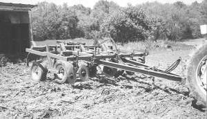 "I first converted my Deere 1610 13-shank (15-in.) chisel plow to wider spacings for better trash clearance," says John L. Parker, McCutchenville, Ohio. "I removed six of the shanks and respaced the remaining seven on 22 in. spacings. I replaced the original 3 1/2 in. wide straight shovels on the shanks with 2 1/2-in. twisted shovels. Then I added seven Yetter high residue coulters on front of the toolbar. I use the chisel plow in the fall, which leaves a nice mulch over winter. In spring, I use my high-clearance Krause field cultivator or Krause disk on the ground. The combination of fall chiseling and spring cultivating or disking leaves me with 35 per-cent residue levels. I made the conversion for about $850 including the Yetter coulters.