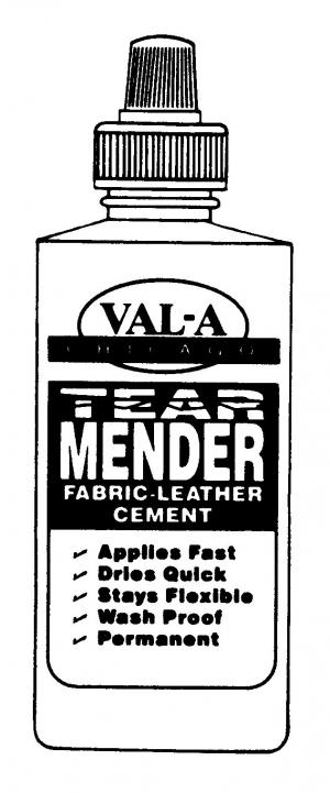 "Even if you can't sew a lick, you can re-pair blue jeans simply by applying a thin coating to both the jeans and a patch. The jeans will be dried and wearable in 10 to 15 minutes. The glue won't wash out and it'll even bond onto soiled fabric," says Milton, noting that the product is manufactured by Val-A-Chicago. "It also works great for repairing canvas tarps because in many cases it eliminates the need for sewing."