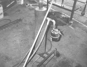 "I also used junk steel and a length of heavy duty well pipe to build my own two-wheeled, pressurized sand blaster. I closed up each end of the pipe. Then I welded an adapter onto the top end of the pipe and welded a valve onto the side. I also welded on an air hose hookup at the bottom of the pipe, where the sand comes out. A 5-ft. long steel rod equipped with a ceramic nozzle hooks up to the air hose. A black toilet paper canister hooks up to the hose and serves as a filter. It absorbs any moisture in the air hose so it won't plug up with sand.