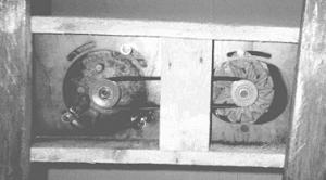 Mounting the right pulley on the engine shaft is the most important part of the conversion. Vertical shaft lawn mowers rely on the weight of the mower blade to keep the engine turning smoothly. To replace the missing weight of the blade, the Epicenter people recommend using a cast iron pulley which can be hard to find.