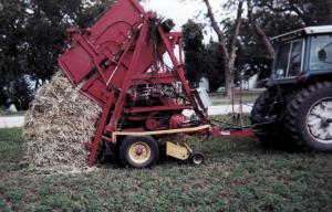 Several years ago FARM SHOW reported on the Agropack, which was invented and manufactured by Joseph Molitorisz (Vol. 6, No. 1 and Vol. 8, No. 5). It produces a rectangular bale about the size of conventional big square bales, but has one rounded end. You can stack the bales flat for inside storage or leave them standing in the field with the rounded end up to shed moisture.