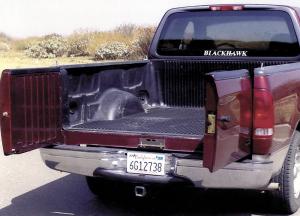 "It comes with a factory white, UV stable finish but can be painted to match any factory color. Black composite bed caps protect the upper edge of the tailgate," says Chuck Williams, Blackhawk Mfg., Bloomington, Calif. "If the customer doesn't want to have the small handle on the outside, they can install a knob on the inside but it won't be lockable.