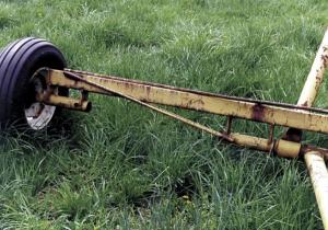 In order to keep my 72-ft. long, 10-in. dia. Hutchinson grain auger from blowing over in high winds, I built a 20-ft. wide axle for it. The original axle housing was made from 2 9/16-in. inside diameter tubing with a 2 1/2-in. dia. axle bolted on inside it. I used a section of similar tubing, extending it 4 ft. on each end. The tubing is supported by 3/8 by 4-in. flat straps which I welded on above the tubing and below 20 ft. of 4-in. sq., 1/4-in. tubing. The tubing is trussed in two directions with 3/4-in. dia. rod. If I ever wanted to sell the auger I could easily convert it back to its original form.