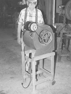 Portable Furnance Fan For Shop Use FARM SHOP Handy Hints 26-6-40 Clifford Brandenberger, Beecher City, Ill.: Clifford mounted a salvaged furnace fan on a homemade, 4-legged wooden stand. The stand rides on two wheels on back and has a handle on front, making it easy to move around. Clifford spends a lot of time in his shop, and keeping cool on hot days is important. The fan puts out a good blast of air.