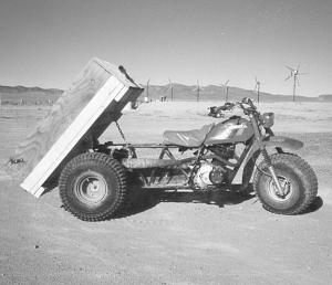 "Mine was a typical 3-wheeler - parked in the corner of my barn collecting dust," says Jeff Hoard, Austin, Nevada, who finally decided to extend the frame and mount a dump bed on it. "Now I use it every day."