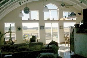 "We then sprayed a latex rubber coating over the insulation with hard flint-like granules to give it a rough appearance and make a harder surface that would be impervious to birds pecking, etc.," Clark explains. "Inside the second floor, it's mostly open with the original steel walls which we like because of the brightening effect the reflective surface has. Little 4-ft. interior stub walls provide some room definition for the kitchen, office, half-bath, dining room and living room, which are located upstairs. The living room has a 13-ft., 2-in. ceiling."