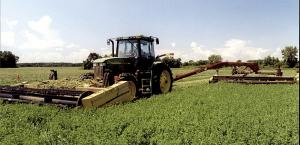 "The only other change I had to make to the tractor was to add a reverser fan on the radiator to keep the dandelion fluff off," says Hoerth. "The whole thing probably cost about $10,000, about the price of a good used 16-ft. haybine, and with this I am cutting 32 ft."