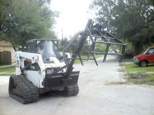 How much weight it can handle depends on the machine it's mounted on. However, a standard 8 ft. Boom-Grapple on a Bobcat T-200 can handle about 3,000 lbs.