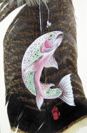 Family members and friends supply Honeywell with the colorful reddish, bronze and green-tinted feathers. She paints them with wildlife scenes featuring deer, moose, bighorn sheep, elk and even horses.