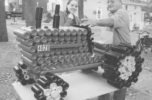 "The tractors get a lot of attention as great lawn ornaments. They're fun to make. I even used cans for the muffler and air cleaner. The seats are made out of wood."