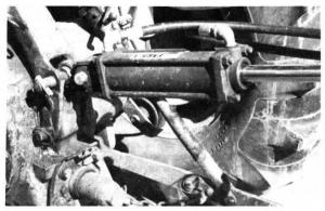 Griessler made special adapters to fit each end of the cylinder. He pinned a steel block between the prongs on the end of the cylinder, then welded a flexible ball hitch - the kind that normally secures the ends of drawbars - to the steel block.
