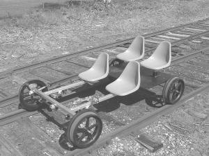 He later changed to plastic wheels. He had a mold made that would accept a BMX bike wheel. Pouring polyeurethane around the bike wheel gave him a 17-in. railroad wheel with a flange that weighed only 12 lbs. He has been making and selling them ever since. Wheels go for $175 each, or you can buy his 2 or 4-passenger carts that start at about $1,800.