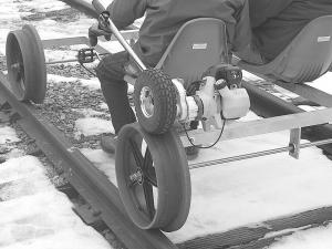 Not all rail four-wheelers are pedal power either. Forster will motorize his rigs upon request. While the price varies depending on the size of the motor, a 5 1/2-hp Honda with keyway in the back axle, sprocket, chain, clutch and mounting will add $600 to the cost of a Rail Runner.