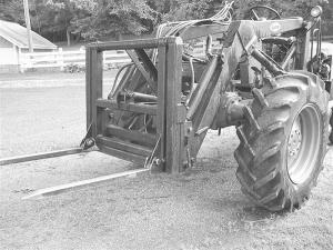 While the loader worked great for most uses, loading bales on a trailer was a problem. The large drive wheels didn't allow him to get close enough to the trailer. While he knew he could buy a special bale fork for about $700, he decided to build one himself.