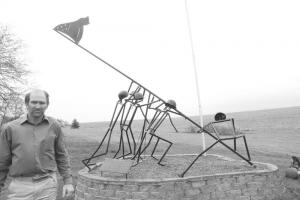"When I made the sculpture, we had a blacksmith close by so I was able to use his plasma cutter to cut the flag out," Kinkaid says. "He helped me design the flag with stars and wavy lines for stripes so it really looks like a flag."