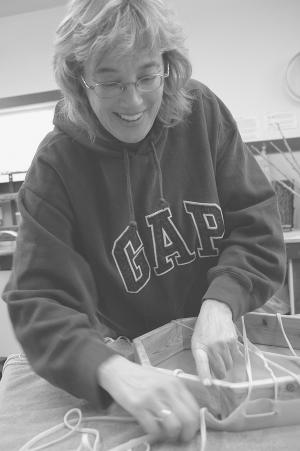 She mounts them on round or octagon frames, using laces she cuts from the hide.
