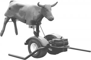 The durable plastic steer mounts on a steel frame and can be pulled behind a riding lawn mower, ATV, vehicle or even a horse.
