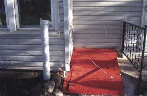 By making use of a counterweight I was able to come up with an easy-open "pit door" for the outside entrance to the basement at our daughter's place. The door is made from 1/8-in. thick deck plate and was too heavy for her to lift. I didn't want lag screws, pulleys, etc. screwed into the house, so I built a counterweight system as shown. It takes all the work out of lifting the door.