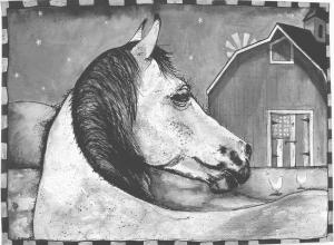 Though she has a bachelor's degree in fine arts and has done fine art paintings, Young says she's developed a casual style of her own. "People say that it's whimsical and yet it reflects life and realism. Living in the country on a hobby farm also influences her work, though Young has lived in all areas of the country because she moved often while growing up.