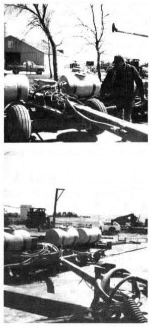 A pair of up-front dolly wheels support the hitch's main 6 by 8-in. telescoping drawbar. The planters are folded by a pair of hydraulic cylinders near the back of the hitch. A pair of 4 by 6-in. steal beams extend diagonally from the front of the hitch to each planter's original hitch mounting point.