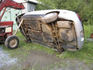 "It works great, especially for working on the exhaust system," says Koster. "I only take the battery and engine oil out, though you do need to empty heavy objects out of the trunk. I've had a car sit on its side like that for a month at a time and have it start right up when returned to all four wheels."