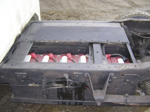 Twenty 6-volt, deep-cycle, lead-acid batteries stored under the pickup bed power Anderson's truck. The charge plug is on the back of the cab, on the passenger side. A plug outlet attaches to a headache rack. Anderson uses electricity for grinders or drills, and even an electric frying pan, to cook a meal while out working.