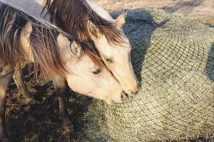 CinchChix also offers nets with various hole sizes. The 1 3/4-in. dia. holes work for most animals, Olson says. But, 1 1/4-in. and 1-in. dia. hole nets can be a better option for horses that are really big eaters and tend to founder.