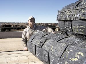 As long as tires wear out, Dale Goetz and his family will have plenty of material for their mat business. The Kansas feedlot owner came up with the tire mat design when he needed soft, non-slip mats in the processing area where he vaccinates and works with his cattle.