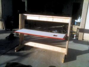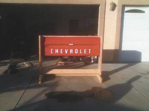 My dad made this desk for me as a Christmas present this year. It’s a tailgate from a 1967 Chevy pickup. He restored the tailgate and then designed a wood frame to hold it. The tailgate pivots down for work, supported by two short pieces of steel cable. He attached a flat writing surface to the back side of the tailgate. This desk will probably last me forever and will end up in my garage some day when I’m old enough to have one. (Johnny Forcht, Pahrump, Nevada)
