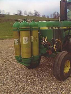 “We have natural gas fumigation systems on a pickup and on our Deere 2-WD and 4-WD diesel tractors, and they work great,” says Warsaw, Ohio, farmer Ed Jones. “Burning natural gas with diesel boosts horsepower by about 30 percent, helps the engines run cleaner and saves us money on fuel.” They have natural gas wells on their farm so the product is readily available. They capture gas from the line with a compressor that fills tanks on the equipment.