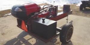 “My son and I built it two years ago. We made it entirely from recycled materials except for the hydraulic components and the trailer jack,” says Adelman, who pulls the unit with his 4-wheeler.