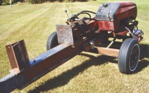 Mark Adelman cut a 14 hp Murray garden tractor down to the engine, hood and dash to build a low-cost, pull-type log splitter.
