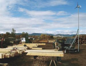 Portable Power Unit Driven By Sun Wind ENERGY Miscellaneous “I like plugging into the sun and wind when I’m out on a job ” says Steven Rundquist about his portable wind and solar-powered generator system And it’s a great fit for his timber frame construction business When he pulls into a remote site without electricity it doesn’t take long to power up He raises the 400-watt wind turbine on a telescoping pipe unloads two 135-watt solar panels and hooks everything up to four 220 amp-hour 6-volt AGM batteries wired in series The batteries power an Outback 3 500-watt AC inverter “The generator will keep up with the needs of a two-man crew pretty much all day long day in and day out ” Rundquist says Based in Colorado he works in many remote areas He grew tired of listening to a gas generator all day and told Mel Wright his friend and co-worker at the time that he would like a quieter option Wright did some research and put the system together for Rundquist about 5 years ago It’s been working well ever since Correctly sizing everything together was the biggest challenge Wright says For Rundquist the inverter was the main focus “He has a $2 500 European chain mortiser tool and he didn’t want to damage that ” Wright says “We knew he’d pull a lot of amps with his power tools and he didn’t want to hurt them ” The quality Outback 3 500-watt inverter ensures clean power and was worth the $2 000 cost they paid for it Altogether the setup cost about $4 000 and Wright estimates it would cost about the same today as some parts have gone up but solar panels have dropped substantially in price Rundquist notes that with more than 300 days of sunshine Colorado is a natural place for solar power And when the sun doesn’t shine there’s usually wind so the batteries can retain power for the inverter to produce 30 amps of continuous AC power He has rarely had to use hand tools or a gas generator for backup For information about putting a system together Wright suggests going to www builditsolar com and also reading Home Power Magazine “I’m surprised how well it works and how simple it is ” Rundquist says Contact: FARM SHOW Followup Steven Rundquist Brewster Timber Frame Co Timbercrafters 701 Pecan Dr Bellvue Colo 80512 ph 970 493-7682