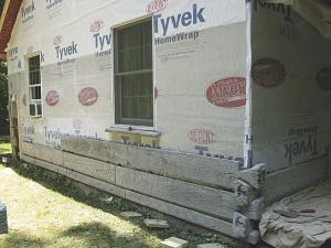 Once all the logs are in place, the siding is ready for staining.