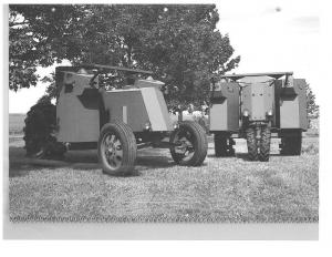 From the little information he could find, Anderson says the original prototypes were built within a few months at the direction of C.D. Wiman, the great-grandson of John Deere. Wiman thought the tractor tanks could be built at low cost ($6,500 to $8,000) and quickly (100/day) to help the military with training and secondary campaigns, and they could pull equipment to the battlefield.