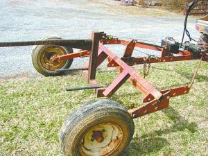 “It may look a little different, but it works great and saved me money,” says Billy Mayhew, Bedford, Va., who converted an Allis Chalmers 4-row corn planter into a 2-wheeled round bale mover.