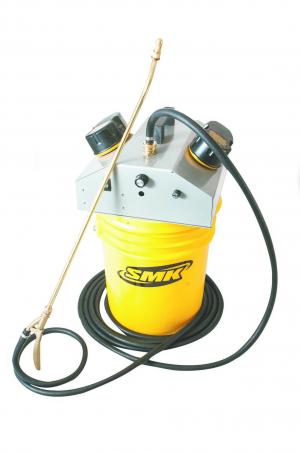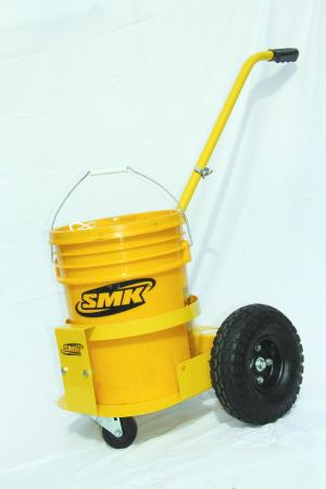 For easy mobility, she sells a specially designed cart for a 5-gal. bucket. For larger applications, she offers units designed to hold a 55-gal. barrel.