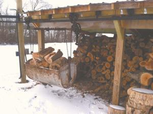 Norenberg installed the system just in time for the 2014 winter. The cold temperatures nearly doubled the amount of wood burned from 7 cords to 12. Complete with a chain hoist to raise and lower it for easy loading, the carrier worked great, says Norenberg.