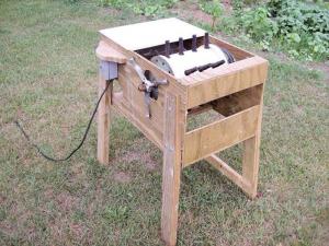 He wired a waterproof electric box and uses a 3/4 hp Wagner water pump motor to turn the drum.