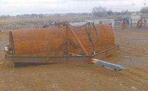 “I started with two scrapped and gutted drums that came from a DD110 self-propelled asphalt roller,” Heilman says. “The drums were 7 ft. long and about 4 ft. in diameter. I cut one end out of each of the drums, used a backhoe to stand one piece on end, then set the other one on top and welded them together. I knew the weight of the drum was probably enough to smooth most fields, but to make sure, I put in a 4-in. cam lock coupler on one end of the drum so it can be filled with water. ”