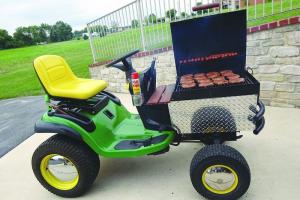 Dale Clugston likes to say that his Deere lawn tractor cooks up both food and conversation, since he converted it into a mobile “smoker grill.”