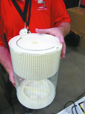 “Foolproof” Live Catch Mousetrap MISCELLANEOUS EQUIPMENT Miscellaneous “You can catch mice like crazy with very little expense and no poison ” says Dave Cassens Grafton Ill about his new live mousetrap “This trap is practically foolproof You can catch one mouse after another in it ” The “Best Mouse Trap Ever” consists of an 11-in long 8-in dia cone made from ABS plastic covered by mesh screen The top of the trap is solid plastic with an entrance hole in the middle The rest of the trap is all wire mesh which allows mice to smell and see the bait A removable plastic tray at the bottom has a divided bait cup for feed and water The mouse climbs up the mesh and jumps through the hole To release the mouse you simply remove the bottom tray “There’s no doubt that this trap will catch lots of mice One farmer put 3 of my traps in his barn a few weeks ago and has already caught 109 mice ” says Cassens “The hole is big enough for young rats and we’ve even caught a chipmunk in it You can dunk the mice in a bucket of water and kill them in seconds “There are no moving parts so there’s nothing to break on it and there’s no poison The built-in food and water system allows mice to live for weeks in the trap so if you’re not home for several days you don’t have to worry about the odor from dead mice Every so often you can just hose off the trap or put it in a deep sink with bleach and it will clean up like new ” According to Cassens the plastic at the top of the trap is so smooth that once mice get in they can’t crawl back out It’s also hard enough that they can’t chew through it The trap sells online for $19 95 including S&H and is also available in some stores You can watch mice getting caught in the trap on youtube by going to www bestmousetrapever com Contact: FARM SHOW Followup Dave Cassens CasMac Innovations 1446 W Main St Grafton Ill 62037 ph 618 786-3614; david cassens@cassensbait com