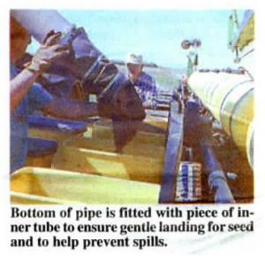 Tumble Drumn Seed Mixer, Planter Filler PLANTING EQUIPMENT Accessories 18-5-40 "When we're getting low on seed we just radio to the edge of the field and by the time they get to us, the seed is all treated. It takes only about five minutes to fill our 16-row planter before we're back in business," says Paul Seger of the ingenious double-duty "tumble drum" mixer he uses to treat soy-bean seed and fill planter boxes.