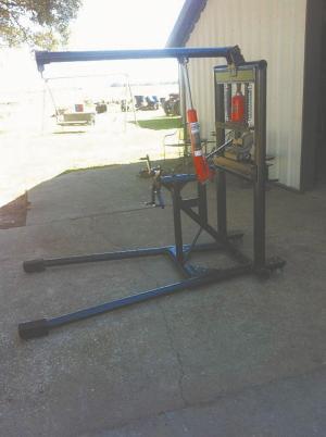 “We’ve used the press to bend 1/4-in. thick by 6-in. wide flat bar with no problem, and even at full reach the hoist is able to lift a 6-cyl. diesel engine.
