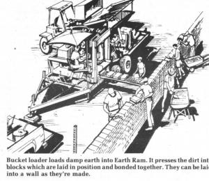"The Earth Ram exerts 225,000 lbs.of pressure, making blocks averaging 45 lbs. each at a rate of about 300 per hour. The machine is portable and you can lay the bricks directly into a wall as you make them," Jones told FARM SHOW.