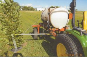 “I stop at every tree and let the pipe down to water; it’s gravity flow. It doesn’t take long to get out 10 gal. It shuts off when you raise it up,” Peterson explains.